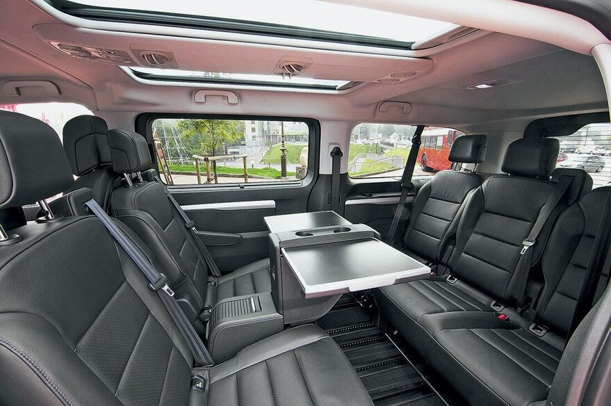 Отдельного внимания заслуживает и оснащение салона. Учитывая, что в продаже доступно четыре типа комплектации Peugeot Traveller, то выбрать наиболее подходящий из них сможет каждый. Но хотелось бы отметить, что даже базовая версия оснащается такими элементами, как: